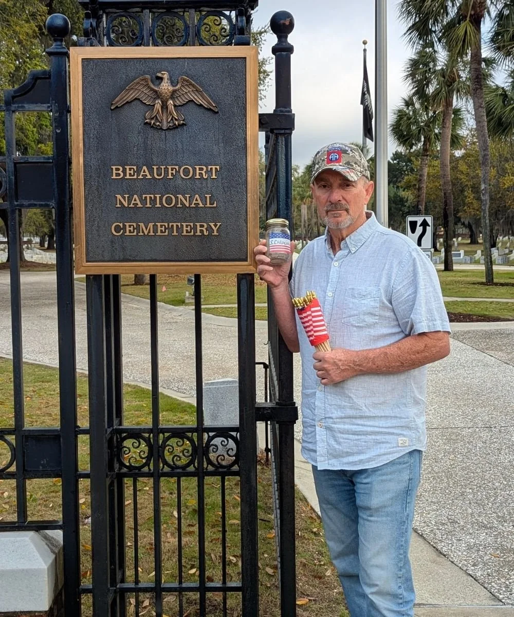 Each collection of soil represents a connection to those who served, preserving their memory in a tangible and lasting way. Placed in vials and sewn within the stars of the flag, this sacred earth becomes a symbol of respect, remembrance, and unity, allowing others to reflect on the legacy of those who gave everything.